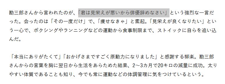 柳楽さんはこの言葉を受けた翌日から、すぐに行動に移したといいます。後にインタビューで「本当にありがたい」と感謝を語っており、厳しい一言が自分を救ってくれたと振り返っています。怒りや傷つきよりも、奮起するエネルギーに変えてしまった柳楽さんのメンタルの強さには驚かされますよね。